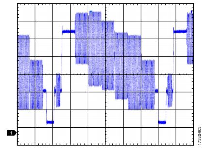 当耦合电容上的负载较高时,如ADA4432-1输入阻抗缓冲器, 耦合电容上的平均电压沿正向电压向上渗透。低电压肖特基二极管提供同步端箝位功能,如图4所示。当二极管的阴极电压高于零时,二极管用作单向开关。因此,信号的最低部分被强制为基准电压,即肖特基二极管阳极的电压电平。耦合电容的值也取决于终端电阻。如果75Ω终端电阻与肖特基二极管并联,则耦合电容必须很大(~100μF或更大)。如果终端电阻高,则为1μF或更低的耦合电容是合适的。此电路有一个缺点,即由于二极管导通电流,同步端有轻微的损失。因此,在系统中低漏电流比高ESR更重要。